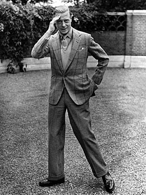 In den dreißiger Jahren änderte sich die Form der Hose, viele folgten jetzt dem Prince of Wales, der sich seine Hosen so schneidern läßt, wie wir sie heute kennen. Und dafür sogar seinen Schneider Scholte verlässt: I never had a pair of trousers made by Scholte. I disliked his cut of them; they were made, as English trousers usually are, to be worn with braces high above the waist. So preferring as I did to wear a belt rather than braces with trousers, in the American style, I invariably had them made by another tailor. Dazu passend bringt Alec Simpson eine Hose mit einem self supporting waistband auf den Markt, die DAKS heißt (eine Kombination von Dad und Slacks). Das macht die Hosenträger überflüssig.